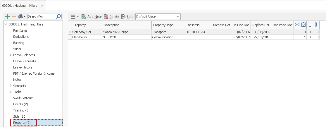 Property added to an incumbent will automatically display in the linked employee file, and vice versa.