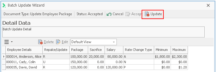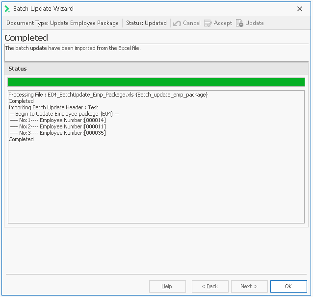 Click Update to import the new data and complete the Batch Update process.