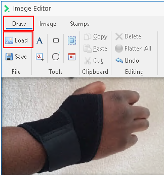 - Still in the Image Editor, click on the Draw tab and select Load.