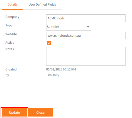 to the left of the company name. - This displays a panel beneath the company list where you can update a range of information.