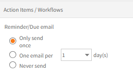 This contains the option for reminder or due emails sent by Employee Self-Service Kiosk for Action Items (OHS) and for Workflows (AW).
