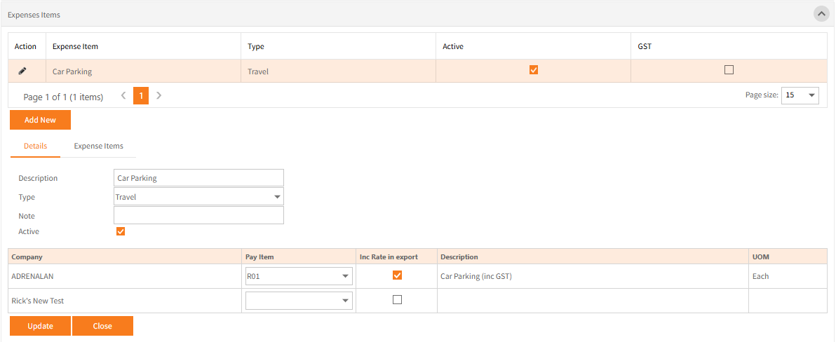 If the expense item is to be exported to Ready Pay, the Pay Item must be selected for each relevant company.