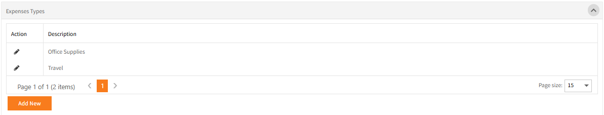 - In the example above, expense types were created for Office Supplies and Travel.