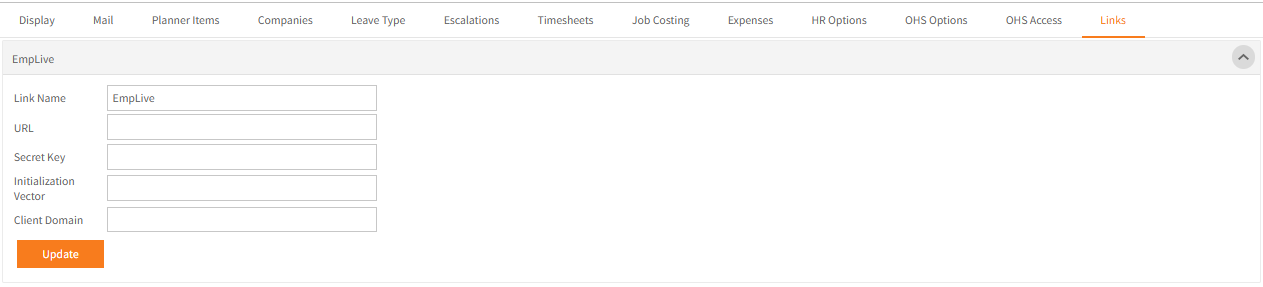 EmpLive is a 3rd party product and will provide the details to enter in this screen.
