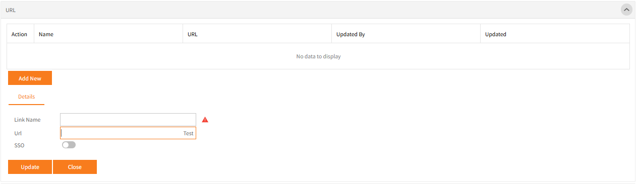 - Click Add New to add a URL into Links in Employee Self-Service Kiosk’s left-hand side menu.