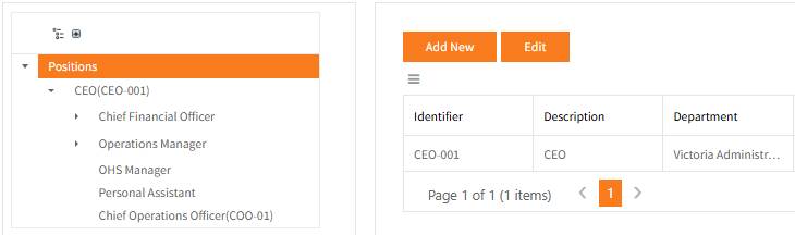 Note: as positions underpin the structure of the Organisation Chart and are likely also used to determine workflow approvers, ensure that when working with positions they are placed correctly in the chart according to their Reports To position. Also note that the Org Chart can only have one position at the top, it is the only position that can have no Reports To.